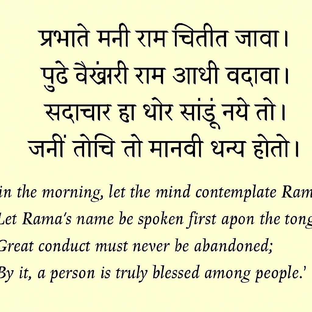 “In the morning, let the mind contemplate Rama; Let Rama’s name be spoken first upon the tongue.